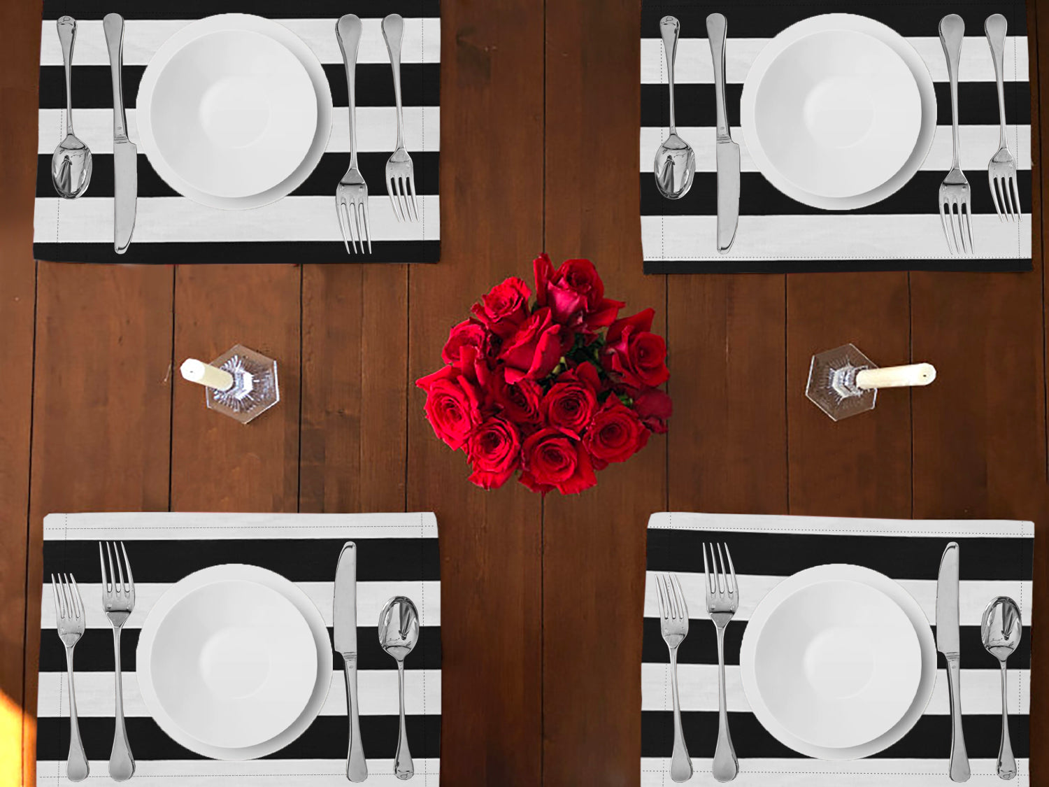 2" Wide Stripes Print Cotton Dinner Table Placemats Holiday Home Decoration 13" x 19" (Pack of 4)