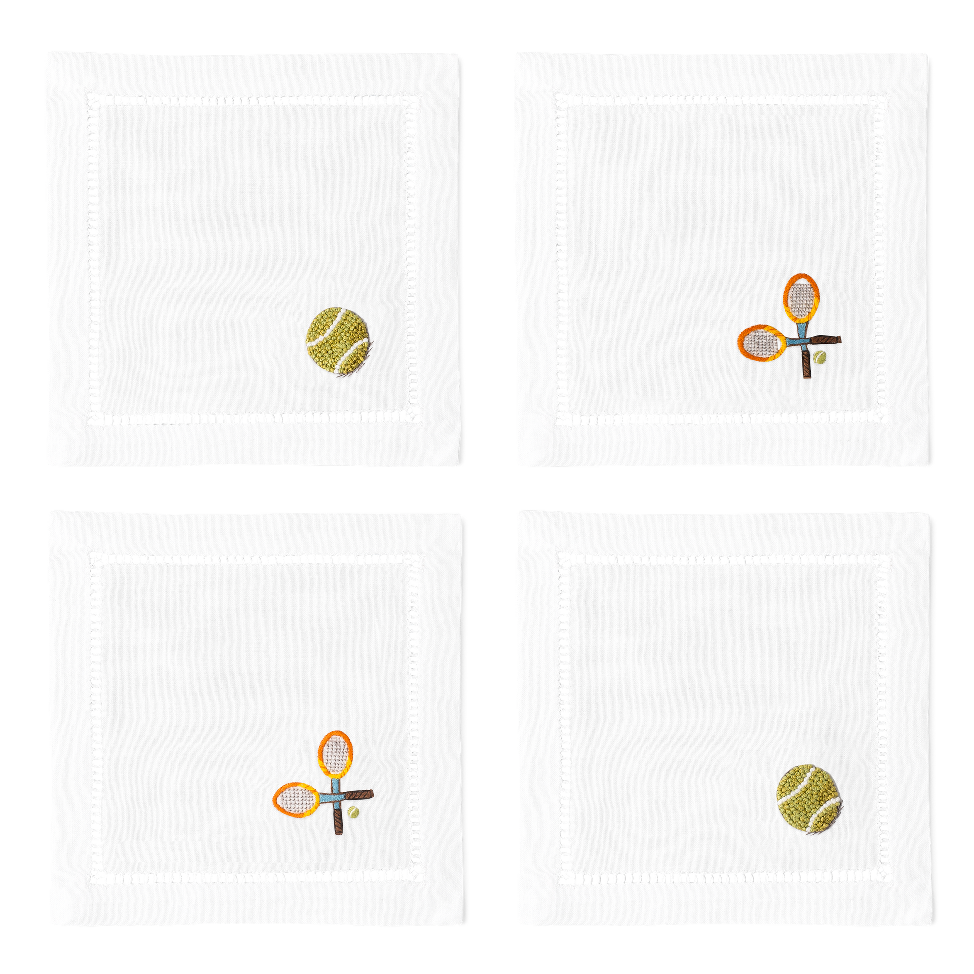 Hand-embroidered cocktail napkins on 100% cotton, finished and hemstitched by hand.