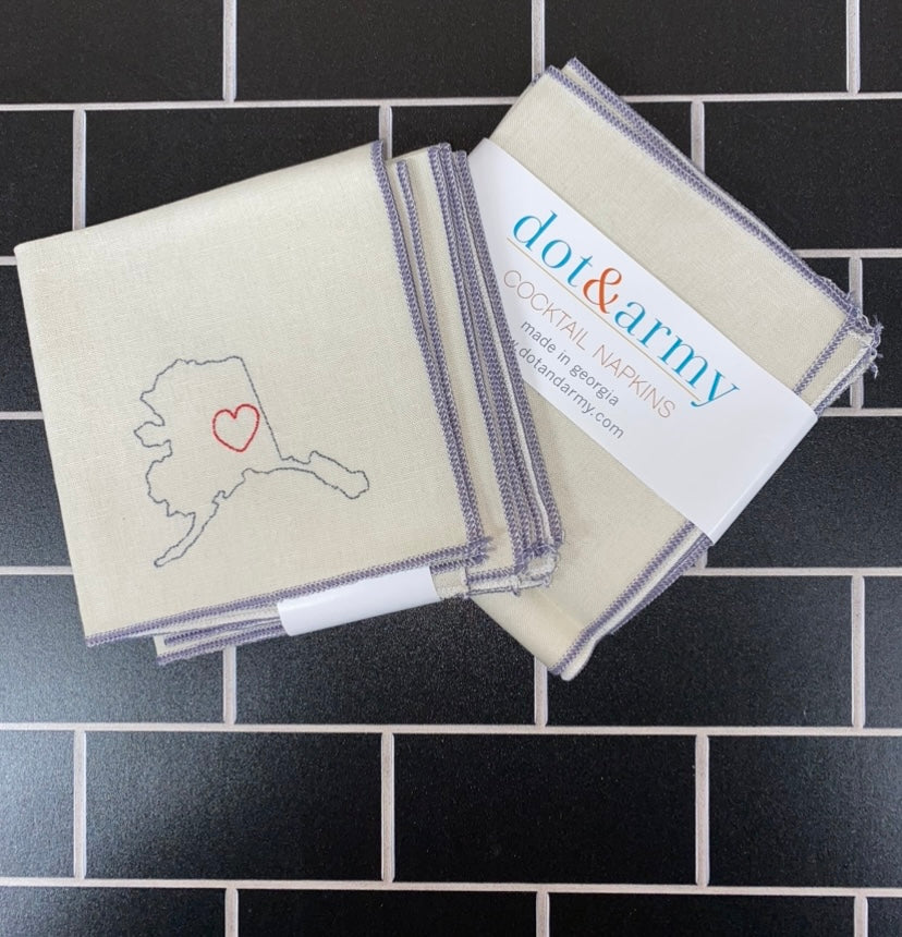 Need a special gift or have state pride? These Alaska state napkins are a unique set made just for you. The perfect gift for friends who are moving. Show your AK pride!