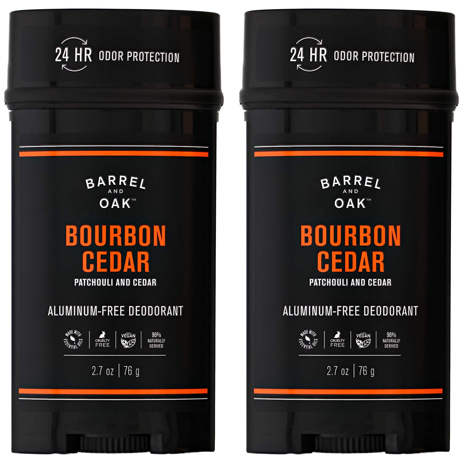 Barrel & Oak Men's Cedarwood Bourbon Deodorant, 2.7 oz, 2-Pack, Aluminum-Free, Essential Oil-Based Scent, 24-Hour Odor Protection, Gentle on Sensitive Skin