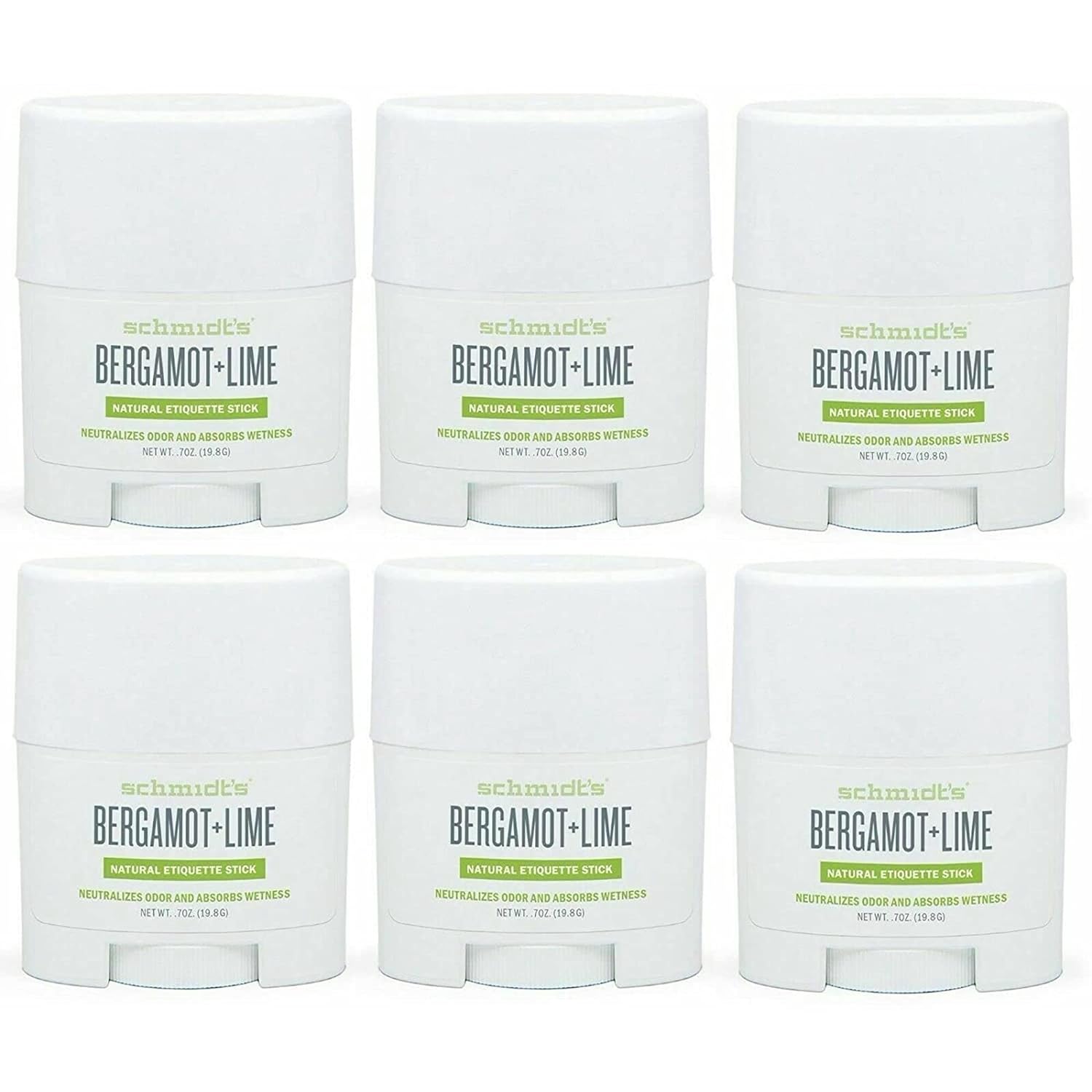 Schmidt's Aluminum Free Natural Deodorant for Women and Men, Bergamot + Lime with 24 Hour Odor Protection, Certified Cruelty Free, Vegan Deodorant, Travel Size 0.7oz, 6 pack, 0.7 Ounce