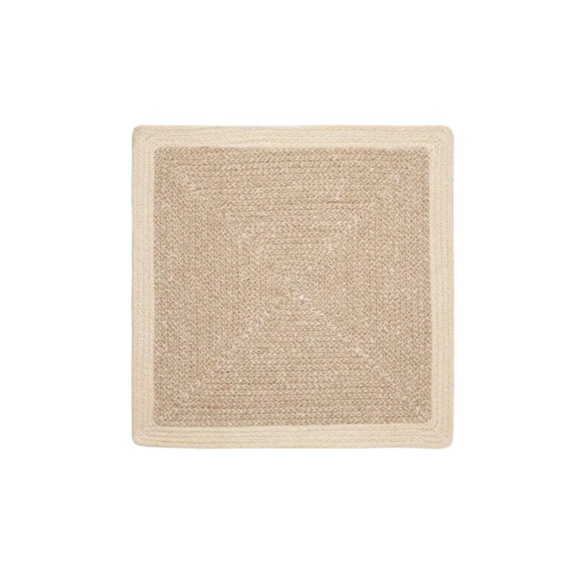 Two colors of cotton jute are texturally woven in the Shia placemat, giving it a rustic charm and two-tone aesthetic.