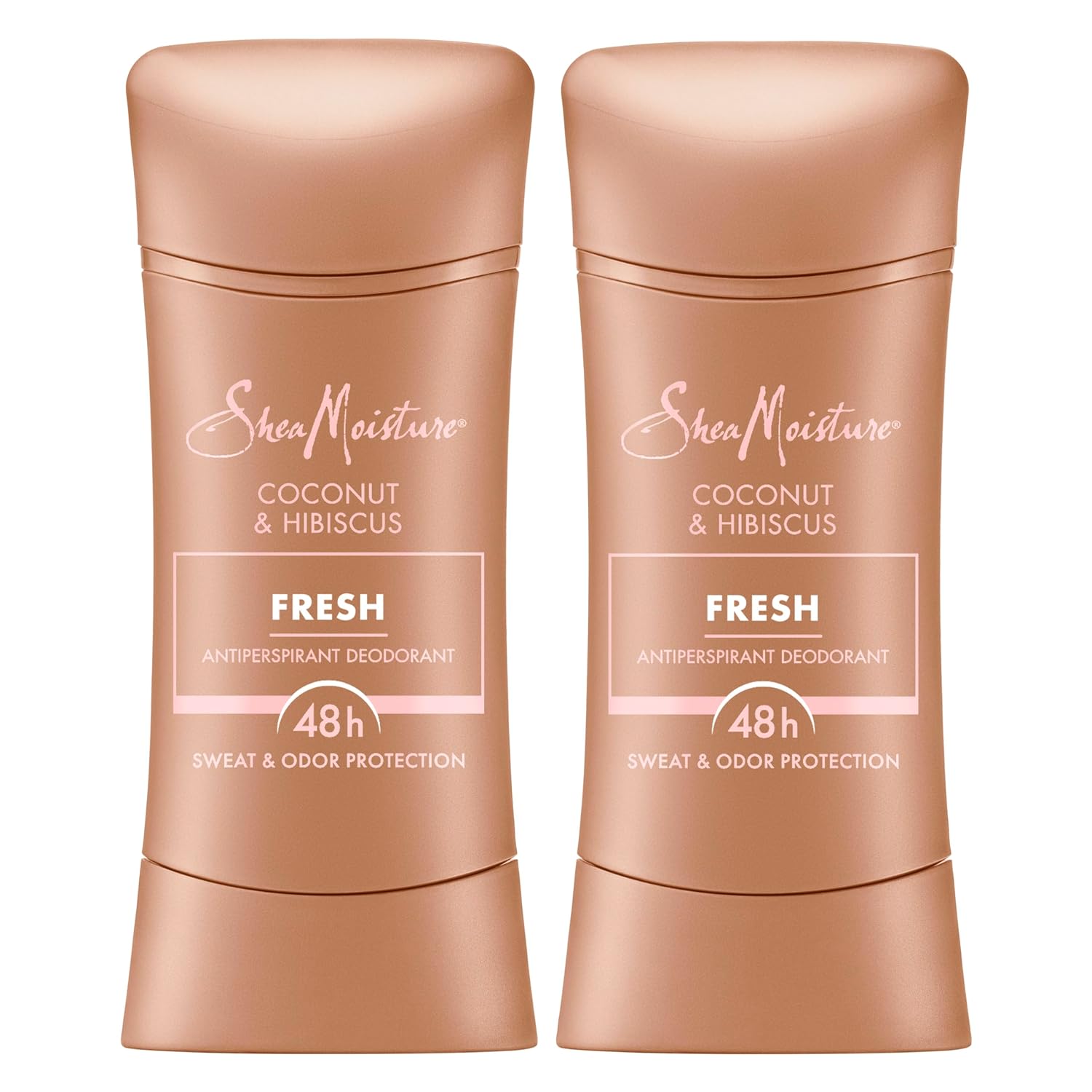 SheaMoisture Antiperspirant Deodorant Stick Fresh Coconut & Hibiscus 2 Count for 48HR Sweat & Odor Protection with No Parabens & No Mineral Oil 2.6 oz