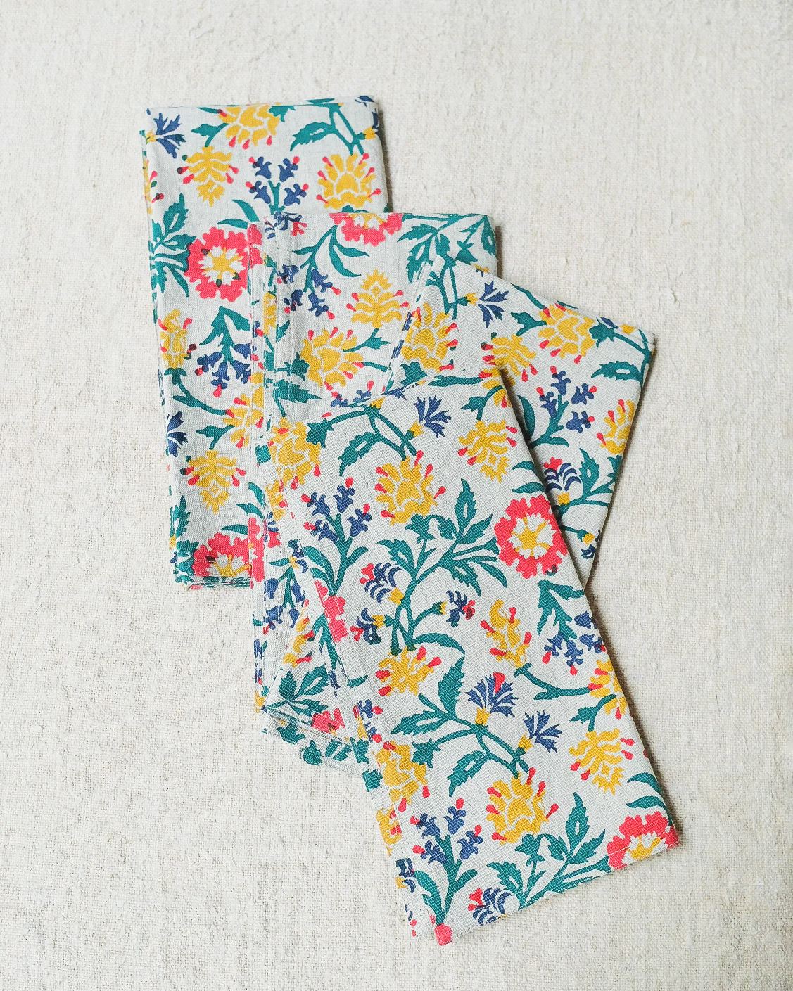 The Asya Linen Napkins are hand block printed by master artisans in a small village near Jaipur. This design is inspired by the romantic, poetic feel of the city of Udaipur. Subtle nuances are to be expected with handcrafted textiles.