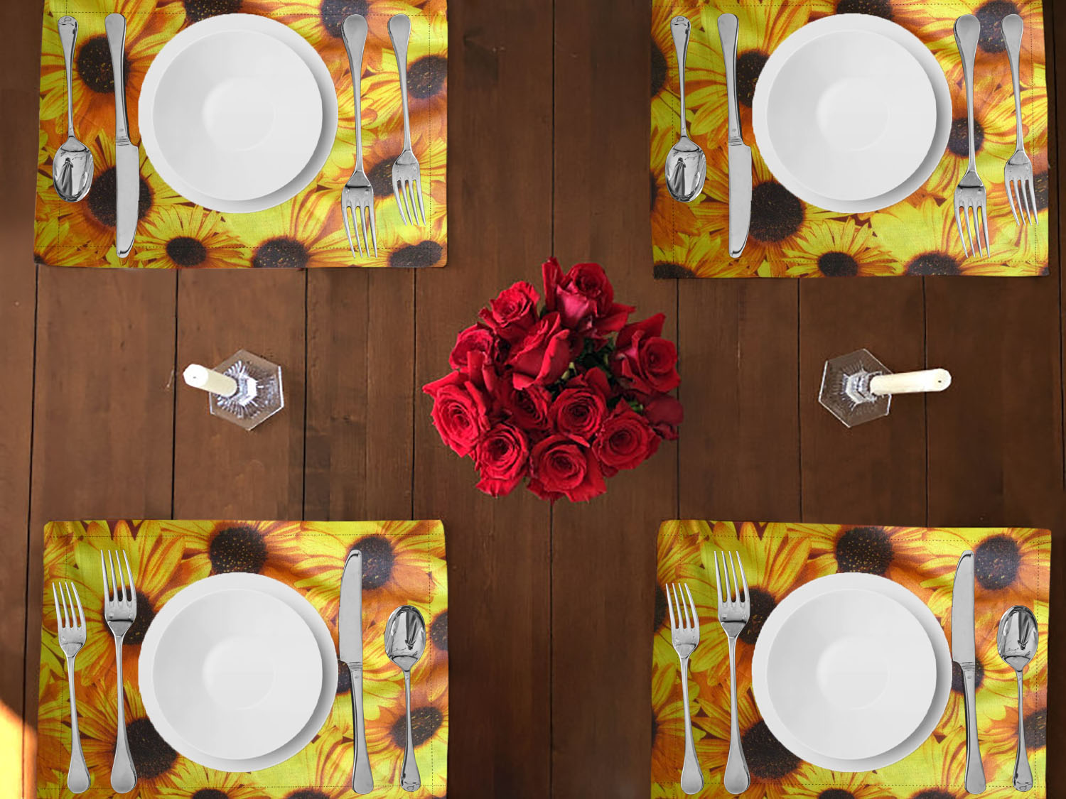 Sunflowers Print Cotton Dinner Table Placemats Holiday Home Decoration 13" x 19" (Pack of 4)