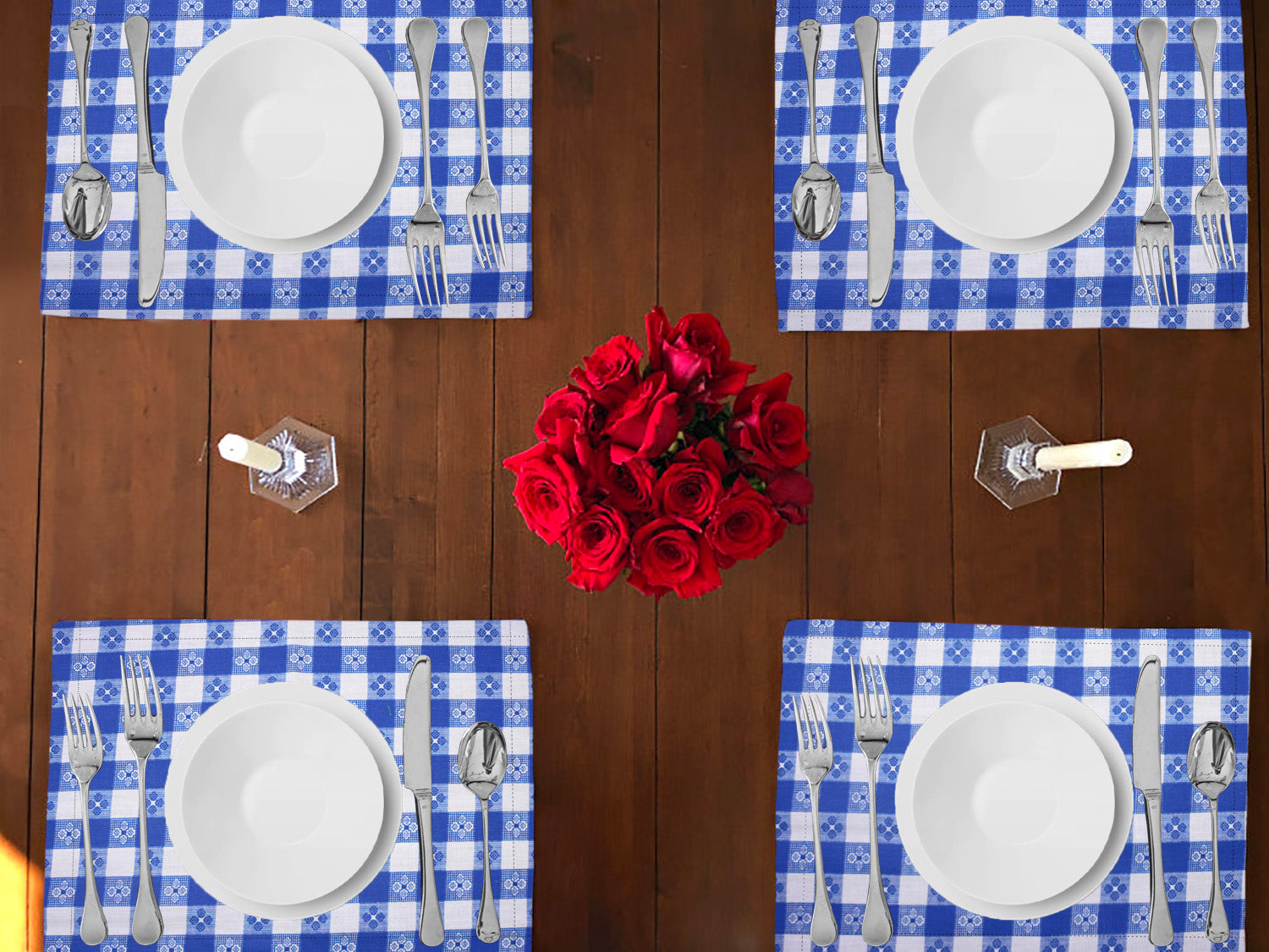 Tavern Check Plaid Print Cotton Dinner Table Placemats Holiday Home Decoration 13" x 19" (Pack of 4)