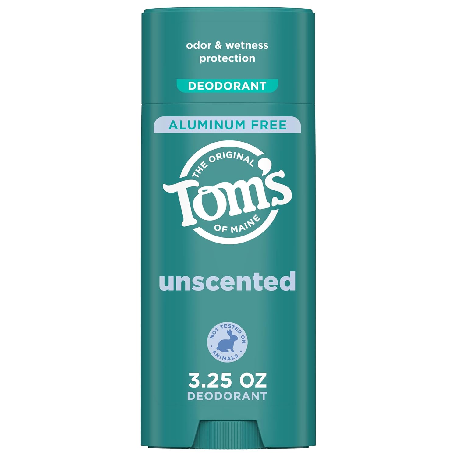Tom’s of Maine Unscented Natural Deodorant for Women and Men, Aluminum Free, 3.25 oz