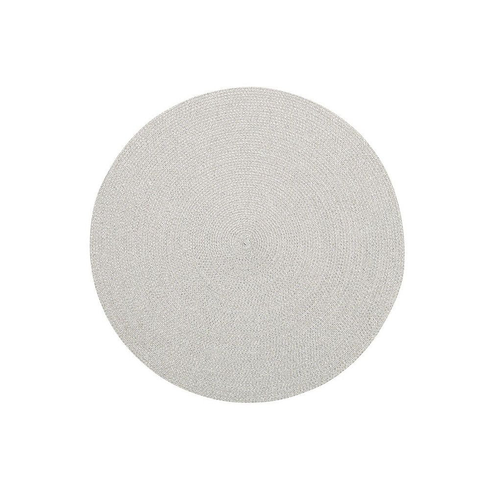 Deborah Rhodes' hand-sewn ivory nylon indoor/outdoor braided round placement is stain-resistant and easy to wipe clean.